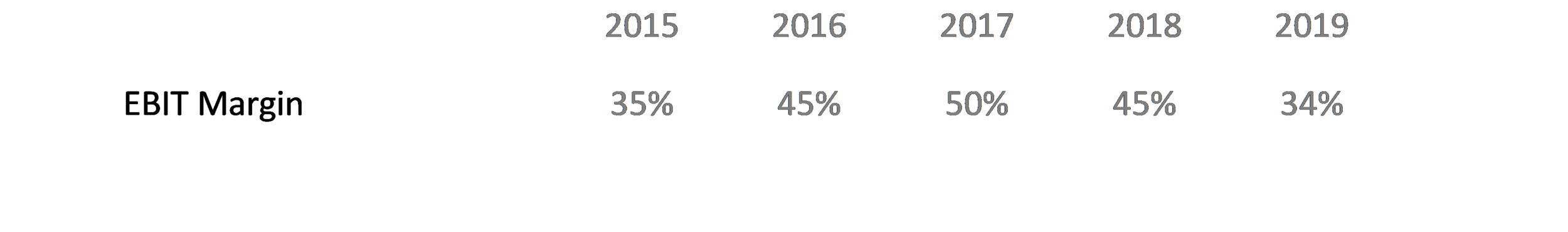 Facebook’s 2020 Q3 results and guidance suggest revenue will grow 18% in 2020. Without the impact of COVID revenue growth would likely have been closer to 22%. I assume revenue growth in 2021 will be 16% and decline by about 2% per year till 2024 to reach 10%. I then assume the growth rate slows by 1% a year to reach 4% by 2030. This implies average growth of 9% a year for the next ten years. Given overall ad spending in the US grew 7.5% a year over the last five years, this seems like a plausible scenario. Facebook should do better than the overall market given the scale of their platform and the fact that they are just beginning to monetize Instagram and will presumably start to monetize Whatsapp at some point as well.