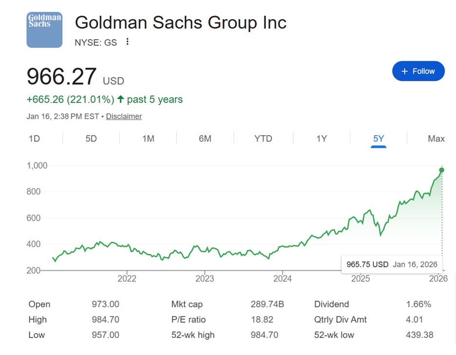 2026 will likely be a stellar year for Goldman given the advisory backlog, so the market is back in love with Goldman.